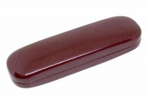 Μεταλλική θήκη , σκληρή , μικρή , μπορντώ , για την προστασία των γυαλιών σας .