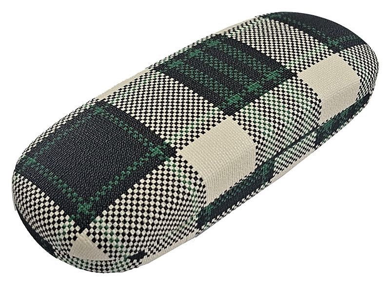 Μεταλλική θήκη , σκληρή , με μοτίβο καρώ , πράσινη , για την προστασία των γυαλιών σας .