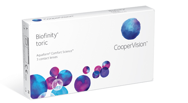 Αστιγματικός φακός επαφής Σιλικόνης Υδρογέλης που συνδυάζει το υλικό Aquaform, με τον υψηλό σχεδιασμό του αστιγματικού φακού επαφής, δίνοντας άριστη όραση και μεγάλη άνεση στον χρήστη, καθώς και υψηλή ασφάλεια και ευκολία εφαρμογής στον εφαρμοστή. Ο φακός επαφής Biofinity Toric είναι το αποτέλεσμα της βαθύτερης γνώσης και εξειδίκευσης της Cooper Vision στους αστιγματικούς φακούς επαφής.