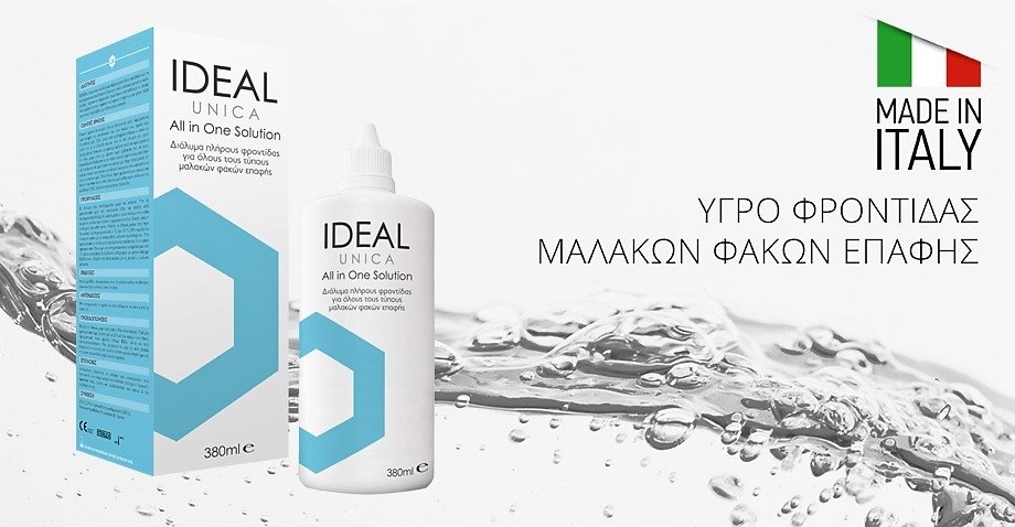 Το IDEAL UNICA είναι ένα διάλυμα πλήρους φροντίδας κατάλληλο για την απολύμανση και την αποθήκευση όλων των τύπων μαλακών φακών επαφής .